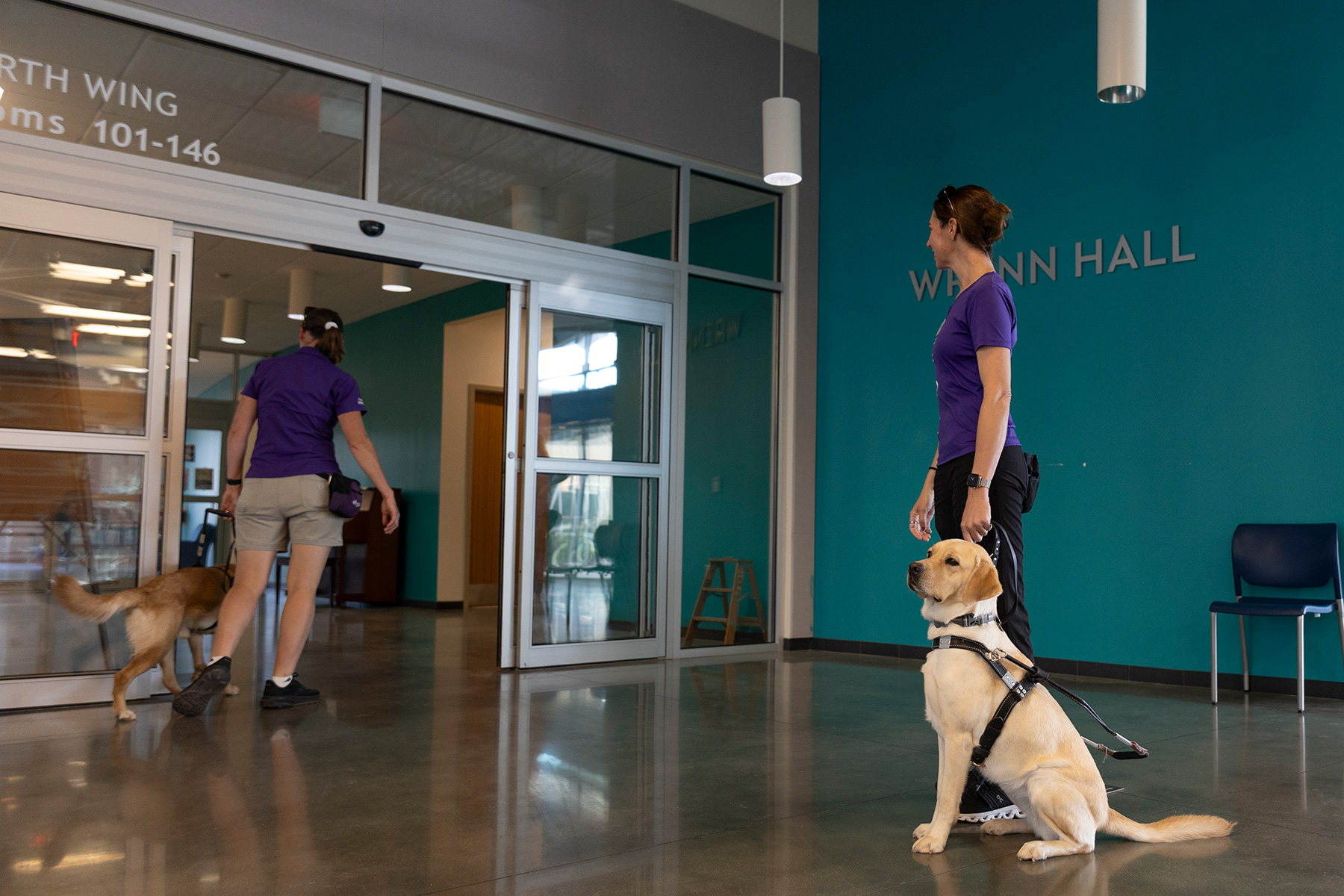 Johnson, who serves as director of guide dogs for Dogs Inc, says she will bring a group that usually includes 15–20 animals and several Dogs Inc trainers. Each trainer will lead and train four or five dogs during the course of a day. They will operate usually from 8:30 a.m. to 1:30 p.m., and while they will be visible on campus, the dogs and trainers will be trying to stay to themselves, because these will be working sessions.