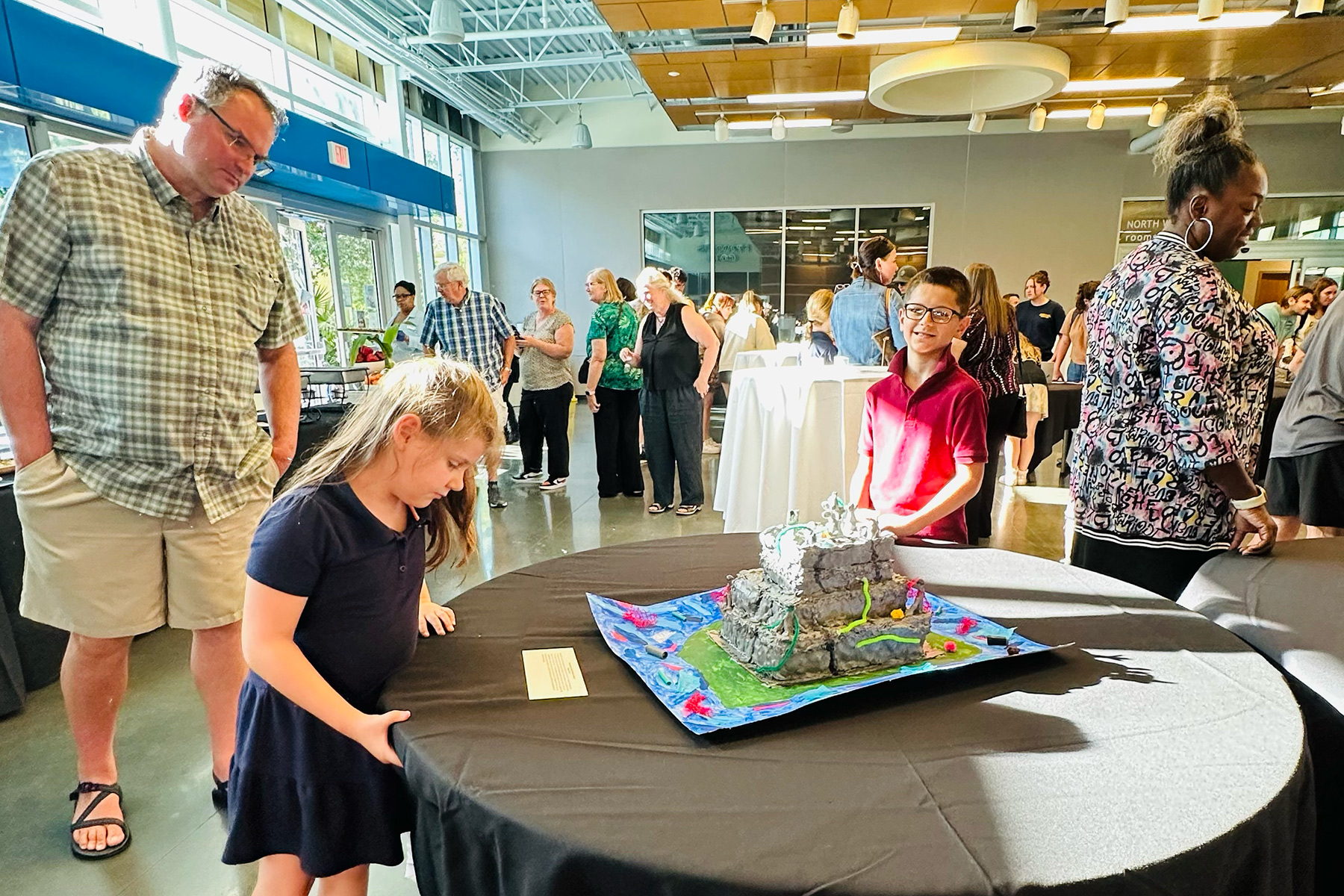 Elementary schoolers and their families got to converse with college students who are passionate about the environment and artistically inclined as well.