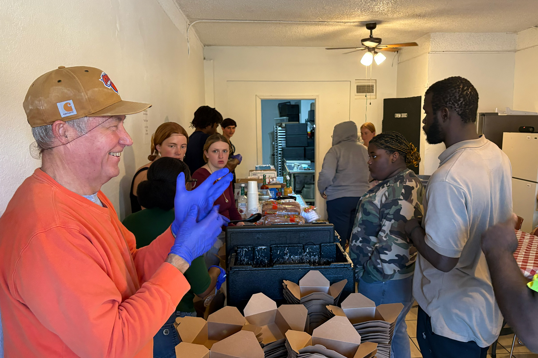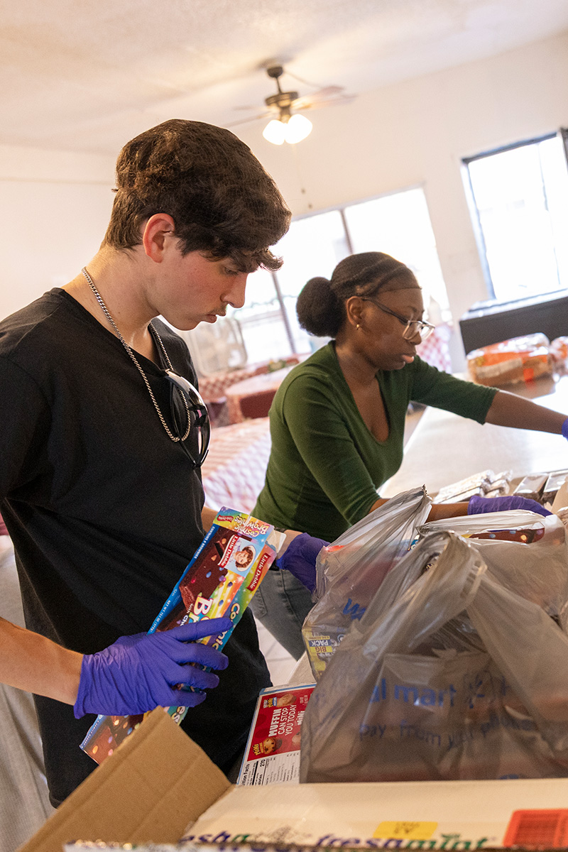 On this Thursday, students were busy preparing meals and setting up the serving area inside the tiny church. Many people get their food to go, and some ask for an extra meal to take to those unable to get to the church.