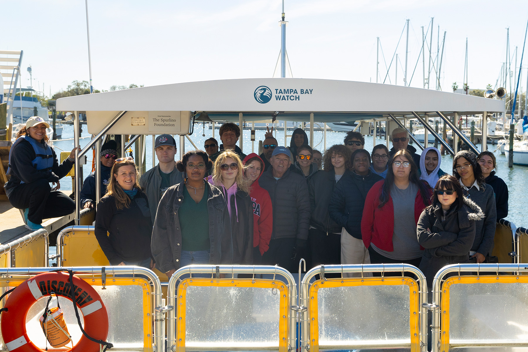Along with coursework, Bergbrant’s students took part in an orientation similar to what Autumn Term students receive. The course also had a 20-hour Reflective Service-Learning component built in, allowing students to learn from and work with two local non-profits: the Seaside Seabird Sanctuary, a wildlife rescue service; and Tampa Bay Watch, a group dedicated to fostering a healthy Tampa Bay watershed. Students built perches and helped with cleanup at the Seaside Seabird Sanctuary, and they visited Tampa Bay Watch’s Discovery Center, took a cruise on one of the organization’s boats, and took part in a vertical oyster garden workshop.